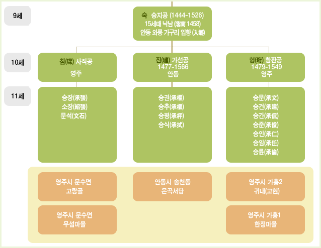 ÇÑ °¡¹®ÀÇ ¹ßÀüÀº °¡¹®¿¡ ´ëÇÑ °ü½É°ú ¾ÖÁ¤À» ÅëÇÏ¿© ÀÌ·ç¾îÁý´Ï´Ù. ¿ì¸®°¡ Áö±Ý ¿ì¸®ÀÇ °¡¹®À» ÀÌÇØÇÏ°í ¾Ë¾Æ°¡¸ç ´õ ÁÁÀº ¹Ì·¡¸¦ ¼³°èÇÒ ¶§ °¡¹®Àº ¹ßÀüÇÕ´Ï´Ù. ÆÇ°ü°øÆÄÀÇ À¯ÀûÀ» ÅëÇÏ¿© ¿ì¸® °¡¹®(ʫڦ)ÀÇ ¿ª»ç¸¦ ¹è¿ì°í ÀÍÈú ¼ö ÀÖ½À´Ï´Ù. ½ÂÁö°ø ¼÷²²¼ ³ªÀÌ 15¼¼(1458³â)¿¡ ³«³²(ÑæÑõ) ÇÑ ÈÄ ¾Èµ¿½Ã ¿Í·æ¸é °¡±¸¸®(¹Ú°î)¿¡ »ç¼ÌÁö¸¸ ÀÚ¼ÕÀÌ ¼ºÀåÇÏ¿© ¿µÁÖ¿Í ¾Èµ¿ ¿ù°î¸éÀ¸·Î À̰ŠÇÏ¿´±â ¶§¹®¿¡ ¾ÈŸ±õ°Ôµµ ÇöÀç´Â ¿Í·æ¸é ¹Ú°î¸®¿¡ Áý¾ÈÀ̳ª À¯ÀûÀÌ ³²¾ÆÀÖÁö ¾Ê½À´Ï´Ù. ½ÂÁö°ø ¼÷ÀÇ ¸º¾Æµé(ħöÚ)°ú ¼Â°(Çüû¨)°¡ Ãâ°¡ÇÏ¸é¼ ¿µÁÖ·Î À̰ÅÇÔ¿¡ µû¶ó ´ëºÎºÐÀÇ À¯ÀûÀº ¿µÁֽÿ¡ ³²¾Æ ÀÖÀ¸¸ç, µÑ°(ÁøòÔ)Àº ¾Èµ¿½Ã ¿ù°î¸éÀ¸·Î Ãâ°¡ÇßÁö¸¸ ¾Èµ¿´ï ¼ö¸ôÁö¿ªÀÌ µÇ¾ú½À´Ï´Ù. À¯ÀûÁö¸¦ ¹æ¹®ÇÏ´Ù°¡ ±Ã±ÝÇÑ °ÍÀ̳ª À§Ä¡¸¦ ¹®ÀÇÇÏ¿© ÁÖ¼¼¿ä. Ä£ÀýÇÏ°Ô ¾È³»ÇÏ¿© µå¸®°Ú½À´Ï´Ù. ¡ØÀ¯ÀûÀº ¹°Áú¹®È ºÎºÐÀÔ´Ï´Ù. ÆÇ°ü°øÆÄÀÇ Á¤½Å¹®È¸¦ ¸»ÇØÁÖ´Â ÀüÀû(îðîß), ¸ñÆÇ, ¹®Áý(Ùþó¢), ½Ã, ¼È, ±³Áö µîÀº °ð ȨÆäÀÌÁö·Î ½Ç¾î¼ ¿µ³² »ç¸²ÀÇ ÀÏ¿øÀ¸·Î¼ ¸Í¿ÇÑ È°µ¿À» Çß´ø ¼±Á¶µéÀÇ ¸ð½ÀÀ» ¾Ë·Áµå¸®µµ·Ï ÇϰڽÀ´Ï´Ù. |